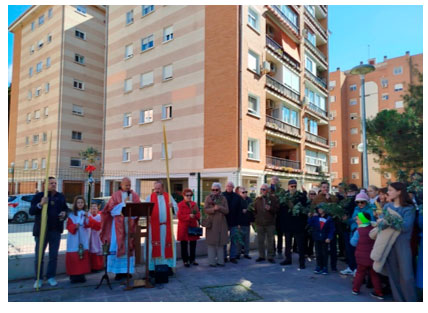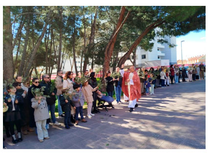 – El Domingo de Ramos, para conmemorar la entrada de Jesús en Jerusalén, nos juntamos en las inmediaciones de la Parroquia, para la bendición de los ramos y palmas. Posteriormente en